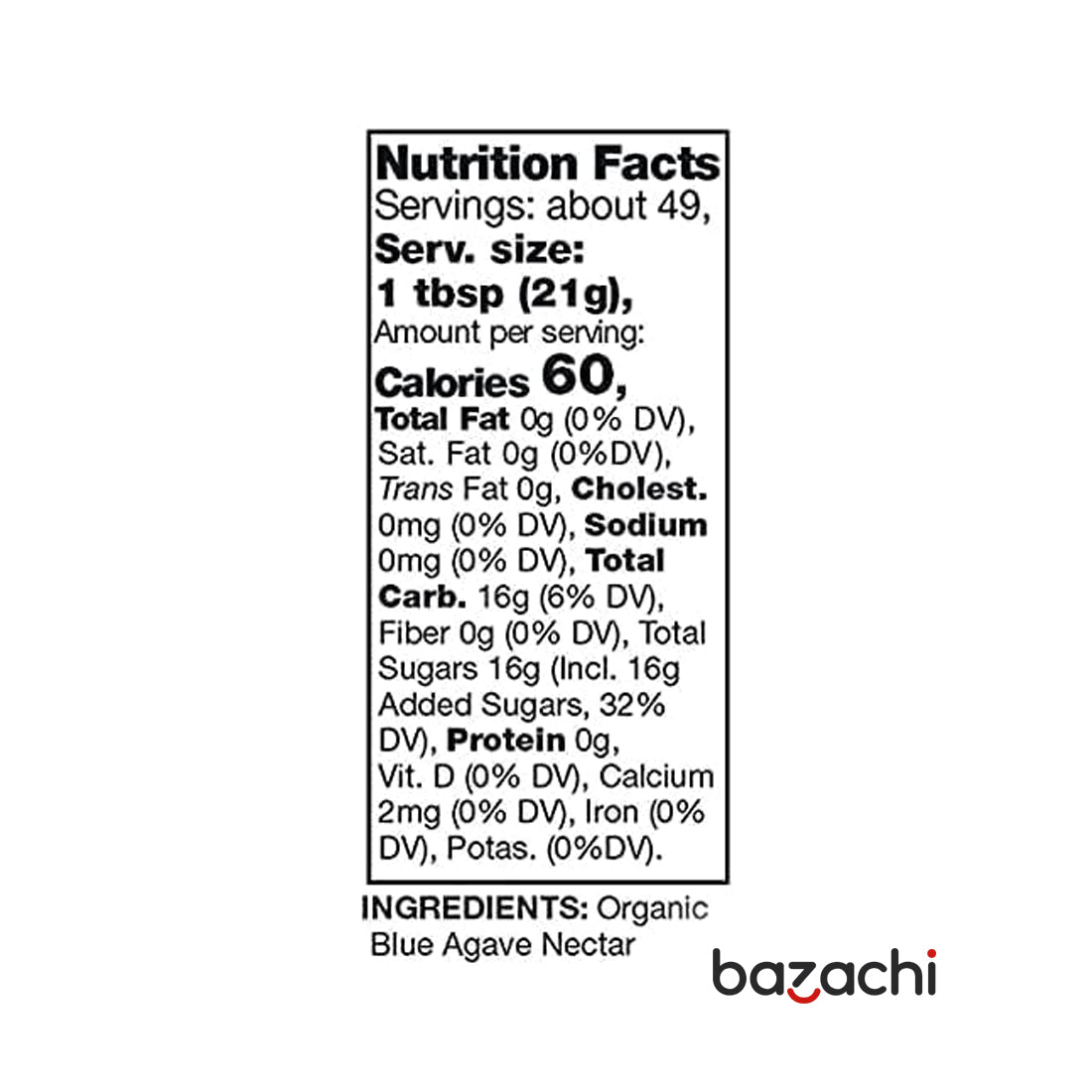 Nutritional Information for Kirkland Organic Blue Agave All Purpose Sweetener 736ml