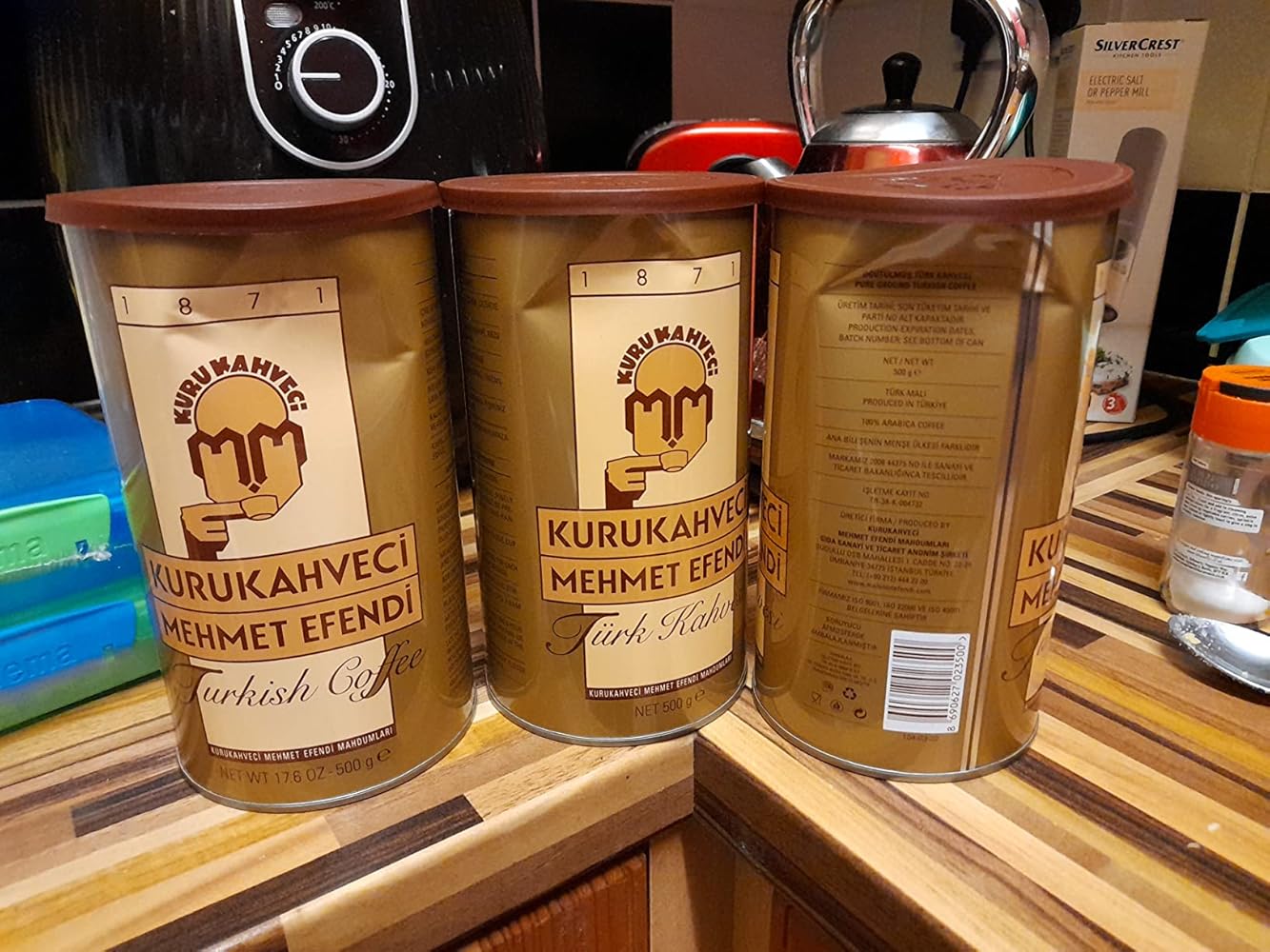 Frankly, this is personally the closest coffee that brings my memories of my home land. Absolutely original taste, sometimes I put the cup upside down and tell the future to my friends by looking the shapes in the cup :-)But this time the carrier played football with my parcel before delivering to me. The tin is beautiful, with nice lid to keep the coffe fresh, but this will look like a bad decor in my kitchen now.